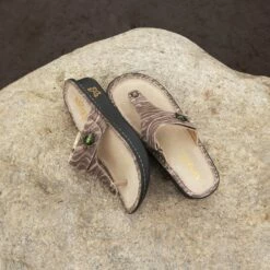 The classic leather flip-flop, a wardrobe must have, is given an artistic update with decorative hardware on an adjustable hook-and-loop close strap. The comfort comes through in a cushioned footbed and slip-resistant classic rocker outsole.