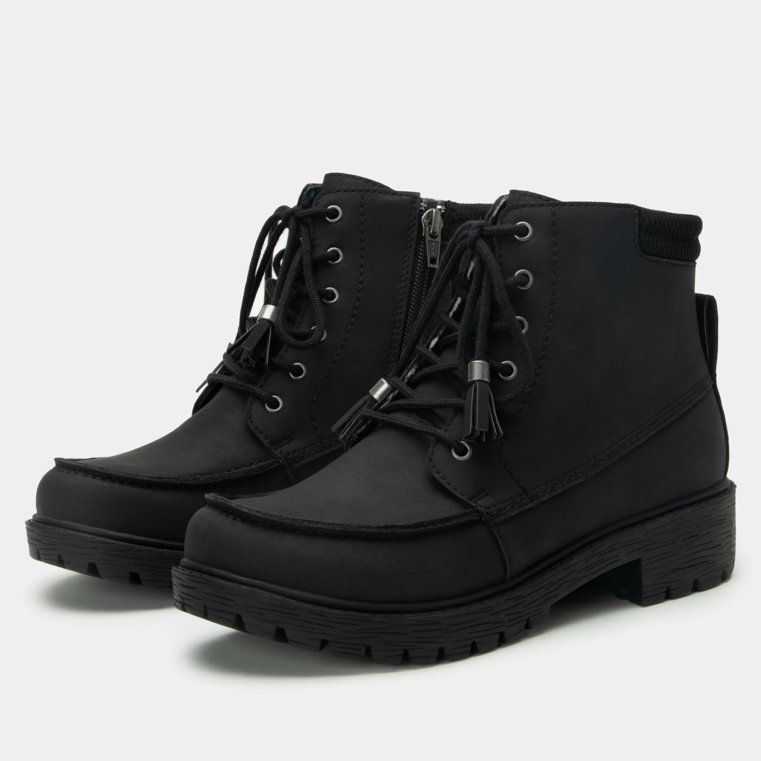 Build a boot wardrobe around this utility-inspired leather style that delivers functionality with water repellant taped seams and slip-resistant luxe lug outsole. For on and off ease, it features an inside zipper and back pull tab. For underfoot support, there’s a removable suede-lined polyurethane, cork and memory foam footbed.