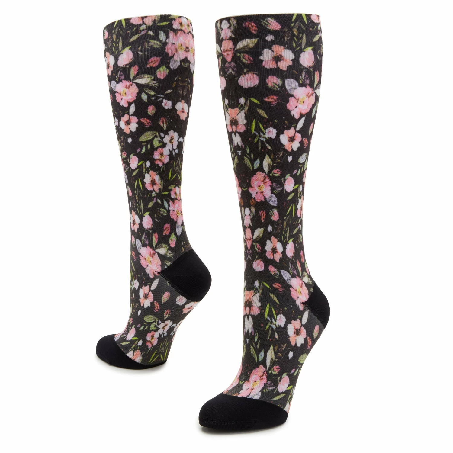 Alegria has created the ultimate comfort companion for our amazingly comfortable shoes. Our first compression sock is made from soft nylon and comfortable stretch spandex that is adorned with our colorful prints, featured here in Delightful. Graduated compression zones for the best circulation, allowing for support in the areas where you need it most. The cuff is non-binding so it gently hugs your calf but gives you all day support.