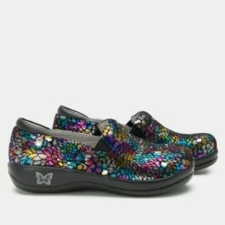 Alegria has created the ultimate comfort companion for our amazingly comfortable shoes. Our first compression sock is made from soft nylon and comfortable stretch spandex that is adorned with our colorful prints, featured here in Fresh Baked. Graduated compression zones for the best circulation, allowing for support in the areas where you need it most. The cuff is non-binding so it gently hugs your calf but gives you all day support.