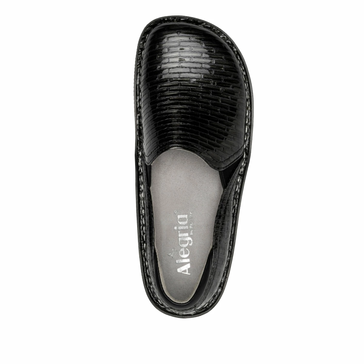 Featured in a fun Brick By Brick embossed design on patent upper.