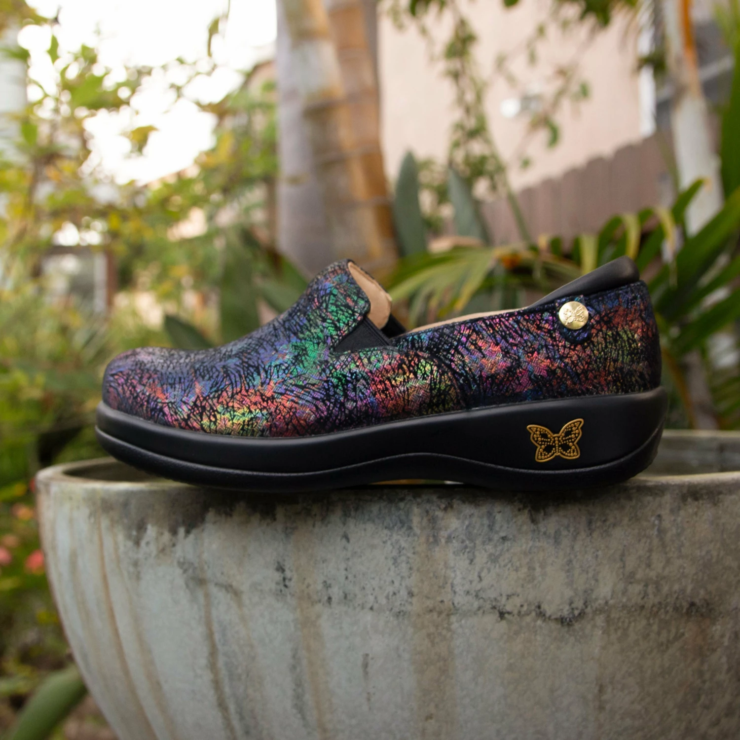 Slip-ons are today’s wardrobe warriors, like this leather style with elastic side gores and gentle padding at the instep and collar. The rounded toe and removable ergonomic footbed made of memory foam and cork enhance the comfort, while the slip-resistant career casual outsole offers all-day support.