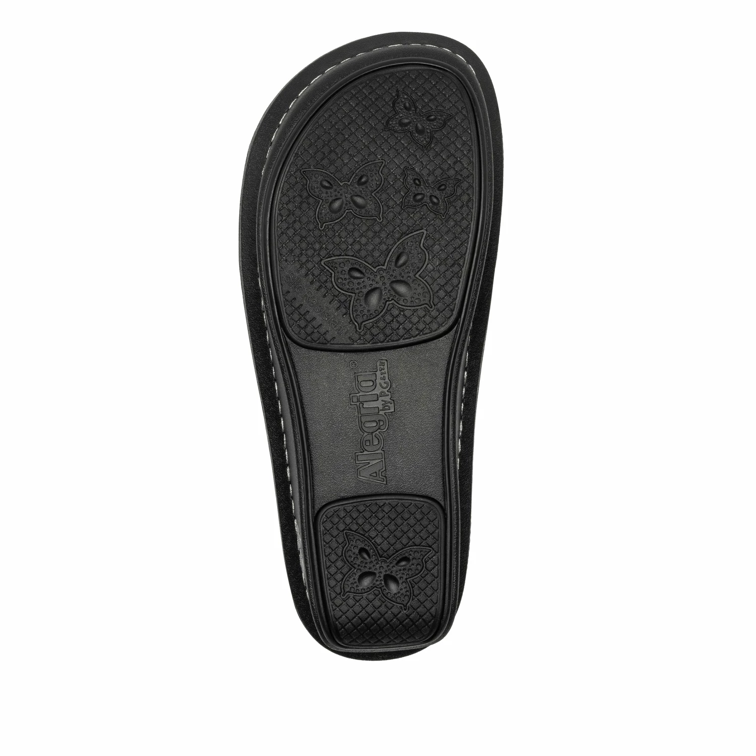 Slides rule in this Klara closed-up leather sandal designed with an integrated adjustable hook-and-loop strap and decorative geometric cutouts. It’s finished with a removable memory foam and cork footbed and slip-resistant classic rocker outsole for walking ease.