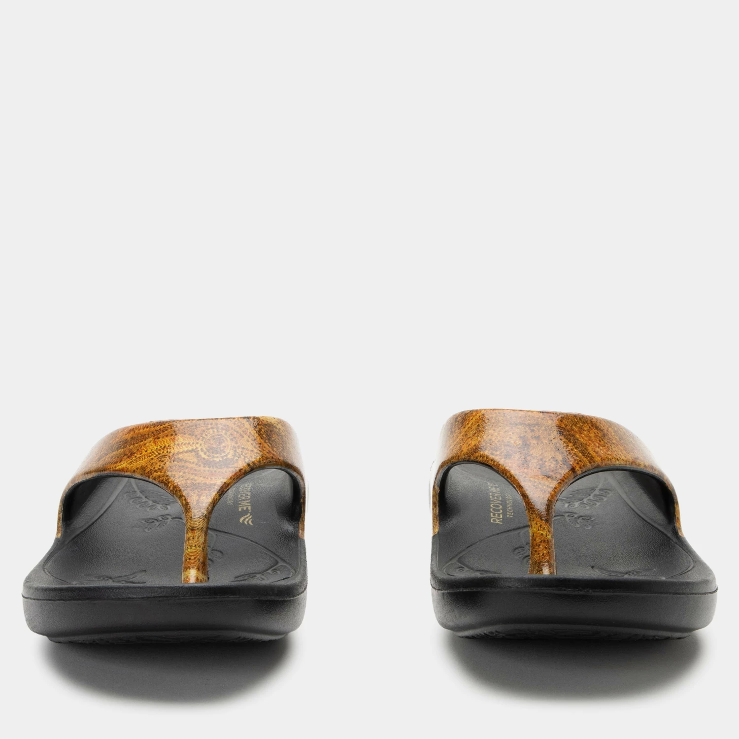Step into Alegrias lightweight recovery flip-flop, your go to style for everyday comfort and port-workout support. Featuring RecoverMe™ technology, the Ode sandal sits on a soft rocker bottom that is ergonomically designed to the contours of the foot. Available in a fresh range of colors and prints that will make your feet happy indoors or outdoors.
