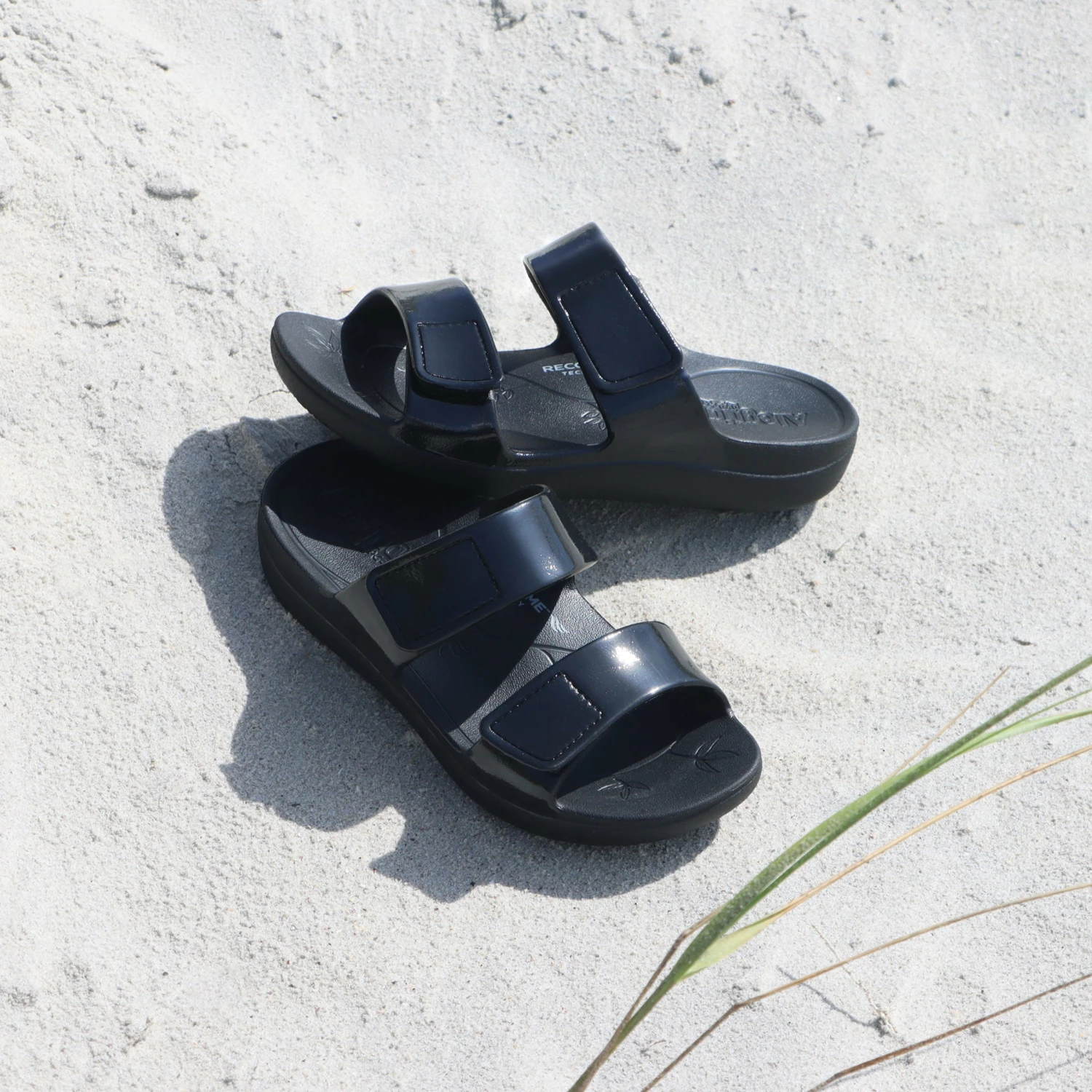 Step lightly in this EVA slide designed with two hook-and-loop close straps for an adjustable fit to your foot. The Orbyt features a built-in molded arch support and RecoverMe™ rocker outsole designed to promote balanced pressure distribution and enhanced surface grip.