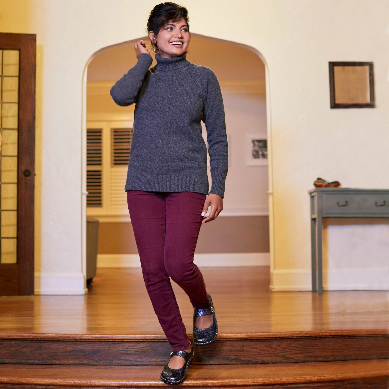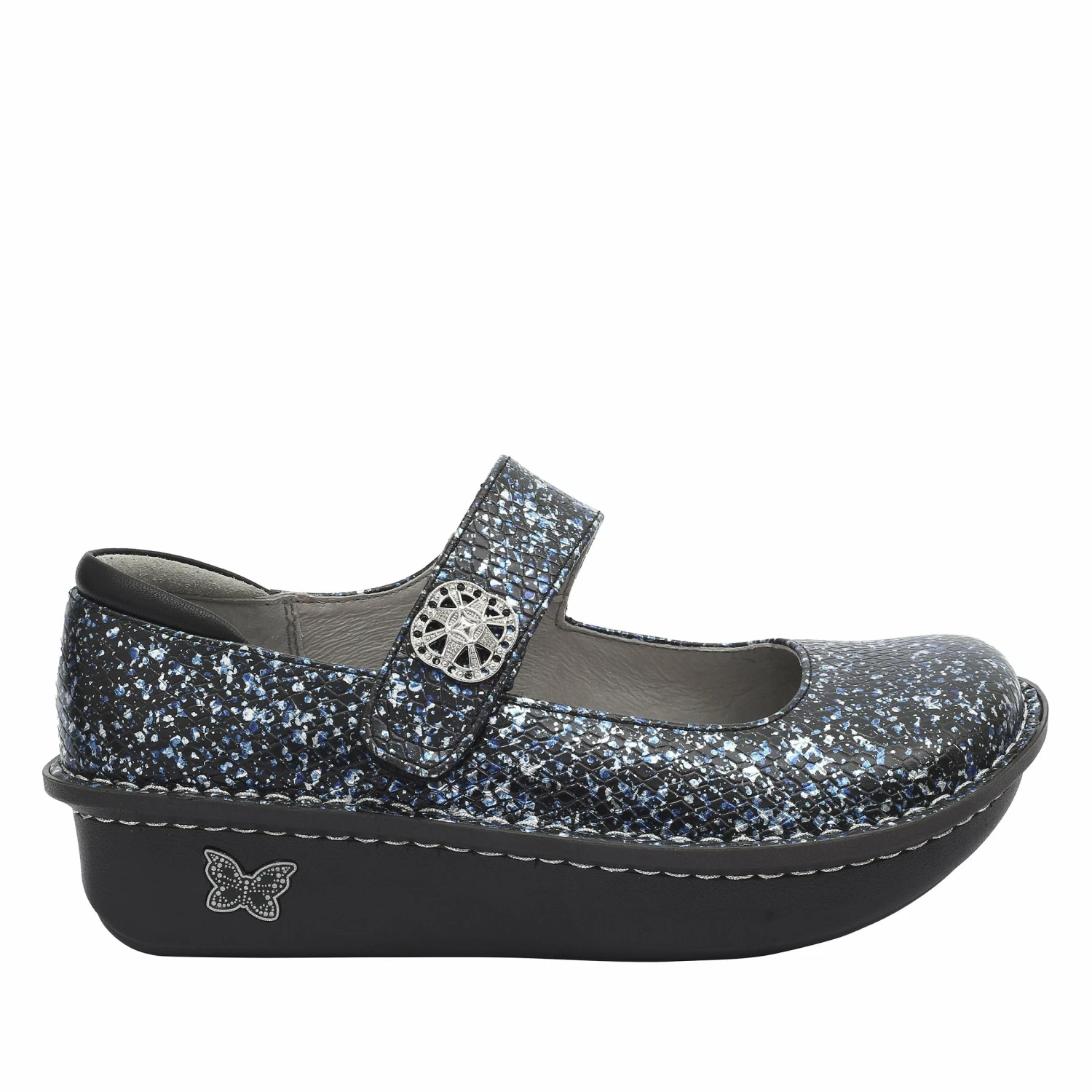 A timeless style with an Alegria twist, the Paloma is the perfect shoe for any occasion. This easy-fit Mary Jane featured in a Blue Racer print on genuine leather, ornamented with a unique button on the strap.