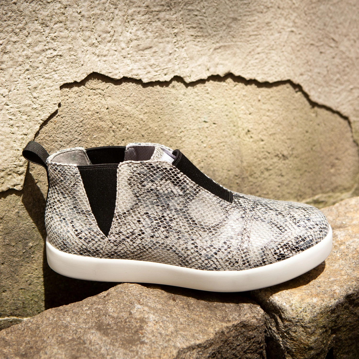 Parker is a slip-on bootie which features three elastic gores on the front and sides, along with a pull tab for easy on-and-off.