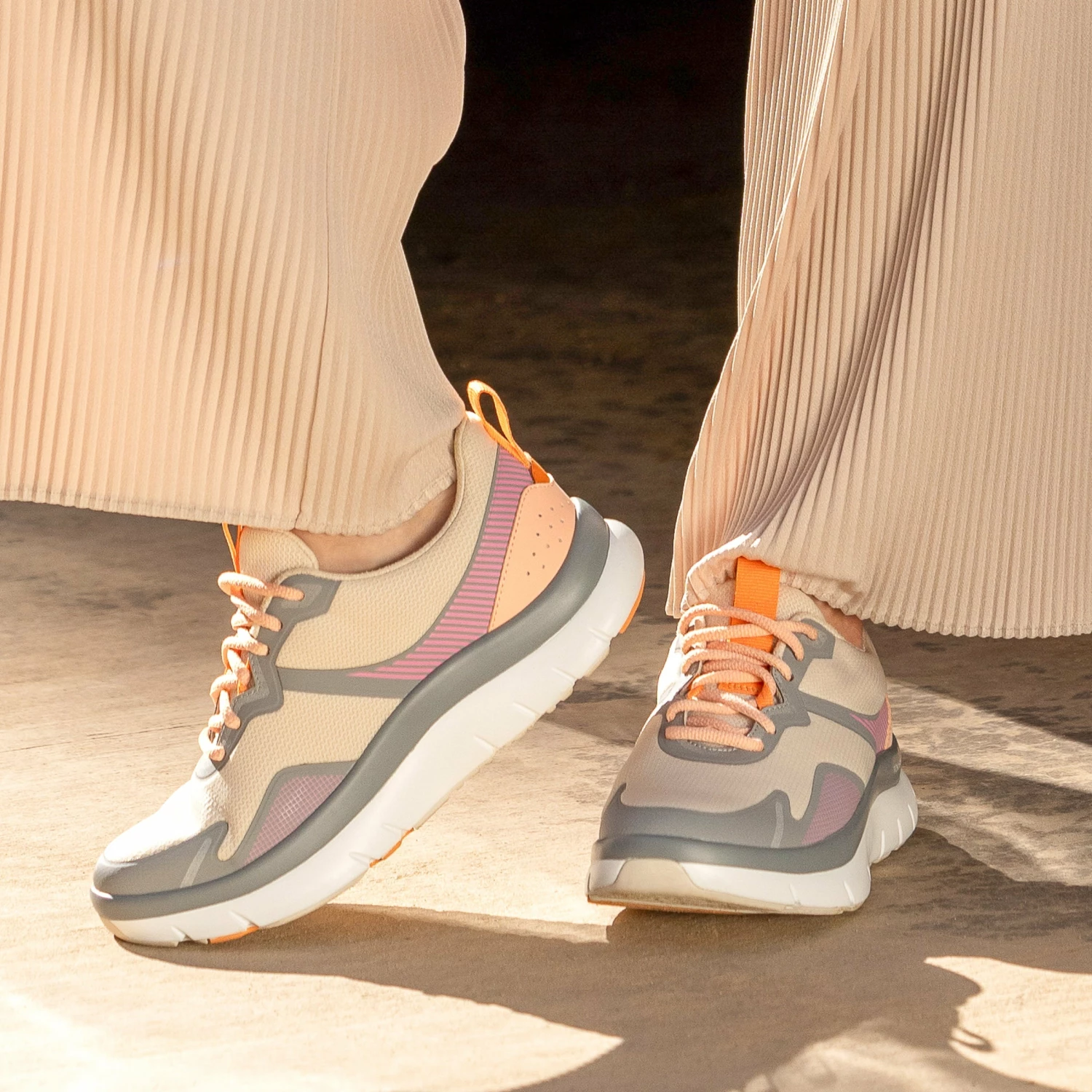 Hit the track in this adjustable lace-up sneaker detailed in breathable mesh with reflective detailing for safety. The performance continues with a padded collar, reinforced heel cup, and protective mudguard. Underfoot there’s a cushioned removable footbed and slip-resistant ROK n ROLL™ outsole with built-in arch support that creates a gentle heel-to-toe rolling motion when walking.