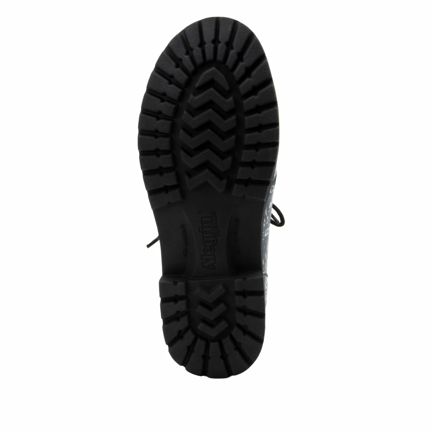 The Reece is on a treaded slip-resistant Luxe Lug outsole that’ll help keep you on your feet. Shown here in a Doll Parts colorway on a printed leather upper.