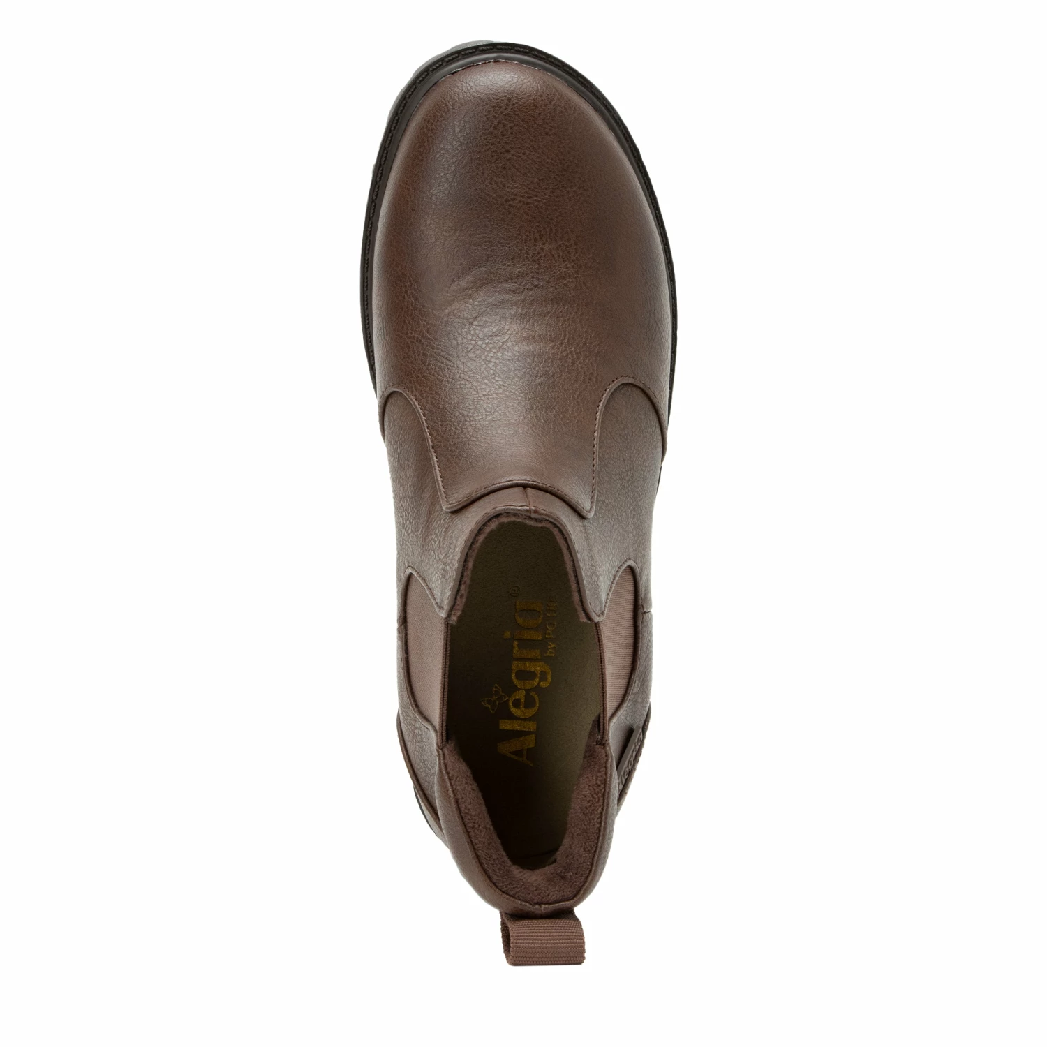 Featured in a Brown vegan leather upper.