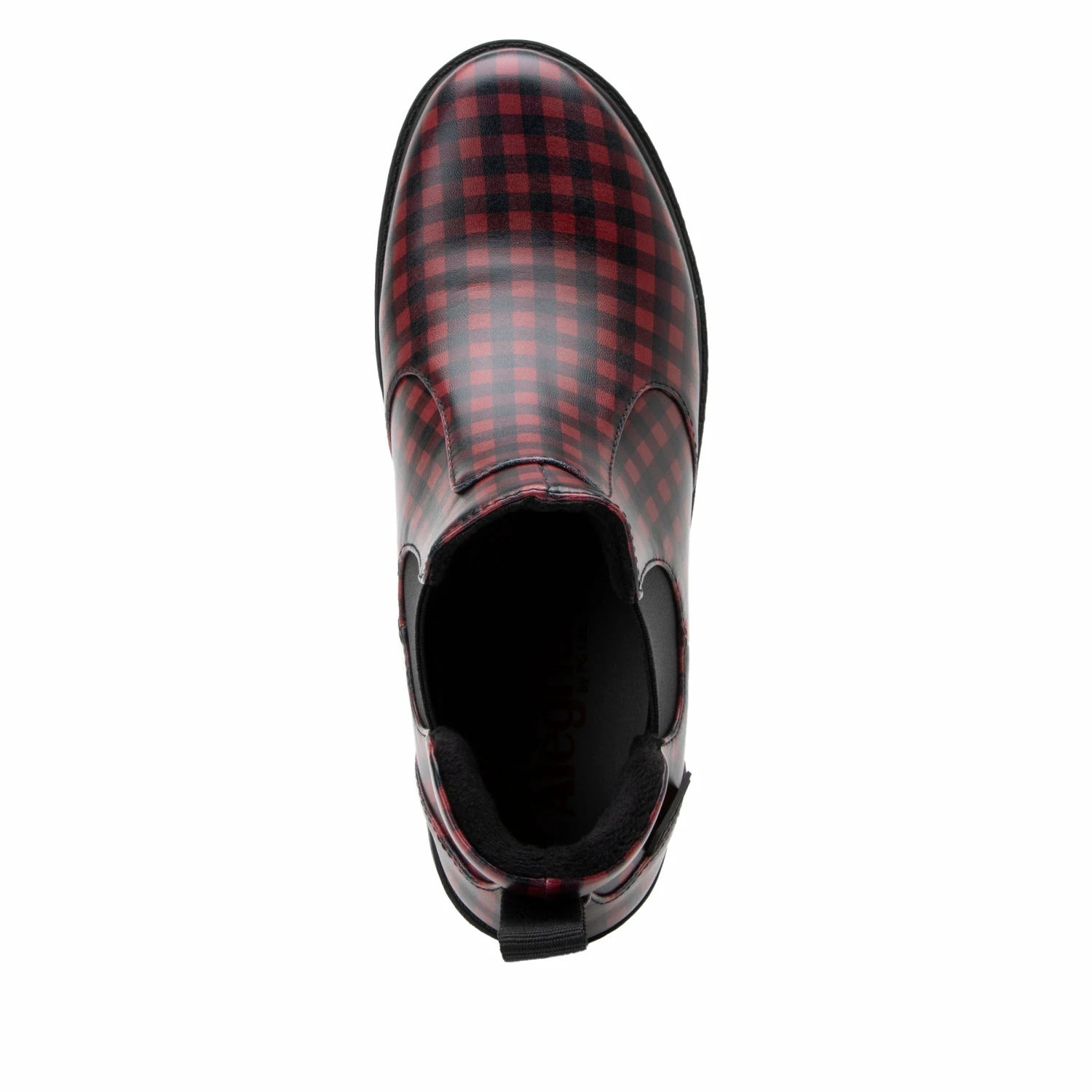 Featured in a Gingham colorway on a vegan leather upper.