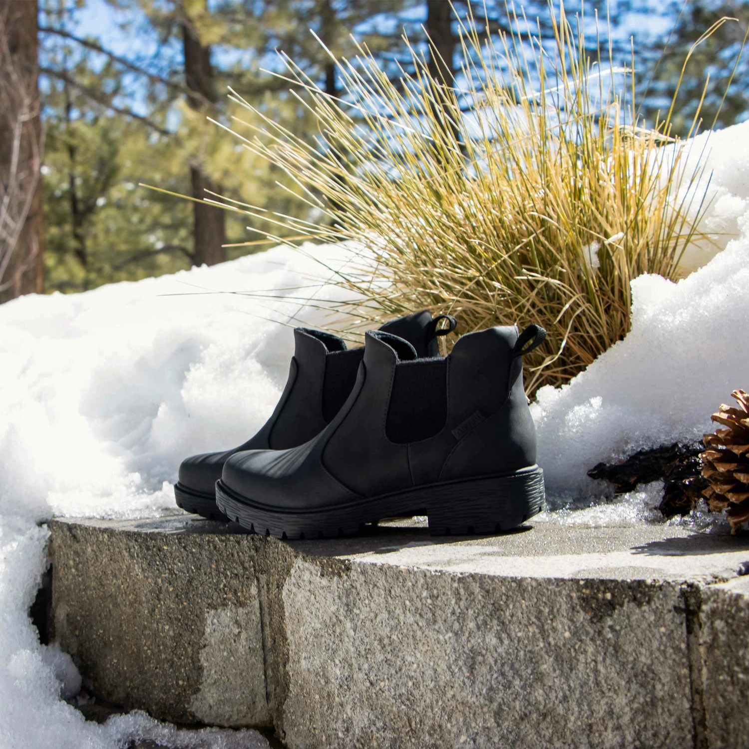 Go anywhere with this waterproof Chelsea boot! The Rowen is made with a vegan leather upper and warm lining that keep your feet and toes cozy. The double elastic gores and back pull tab make for easy on-and-off while standing tall on the slip-resistant luxe lug outsole.