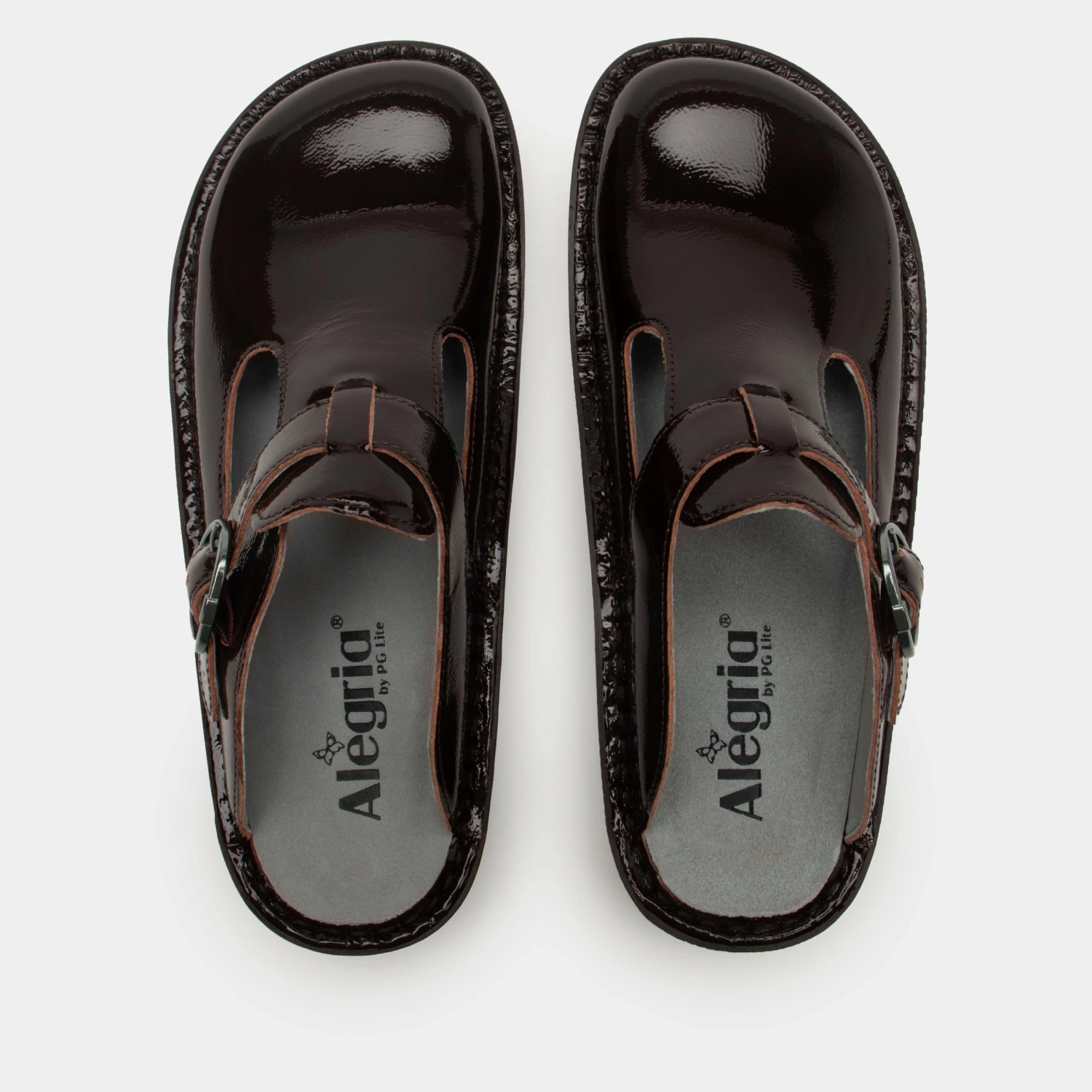 Featured in a shiny Black Cherry colorway on a patent upper.