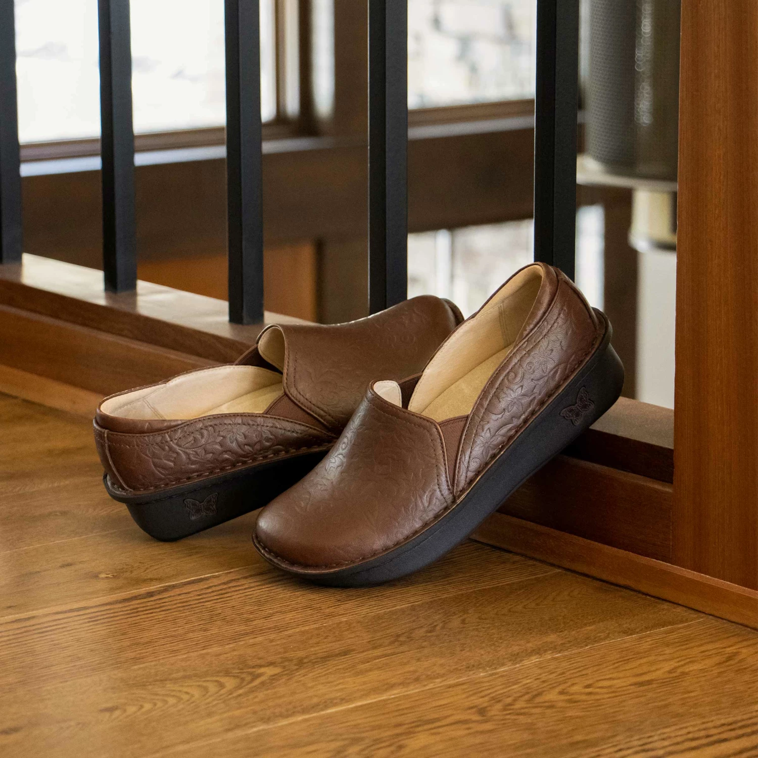 There’s no end to the wearing potential of this slip-on style. Easy to wear thanks to elastic side gores. To keep the comfort going, there’s a padded heel collar and ergonomically designed removable footbed made of memory foam and cork. Finishing it off is a slip-resistant classic rocker outsole that provides just a hint of lift. Slip on the Debra with ease, this style is designed to fit you perfectly.