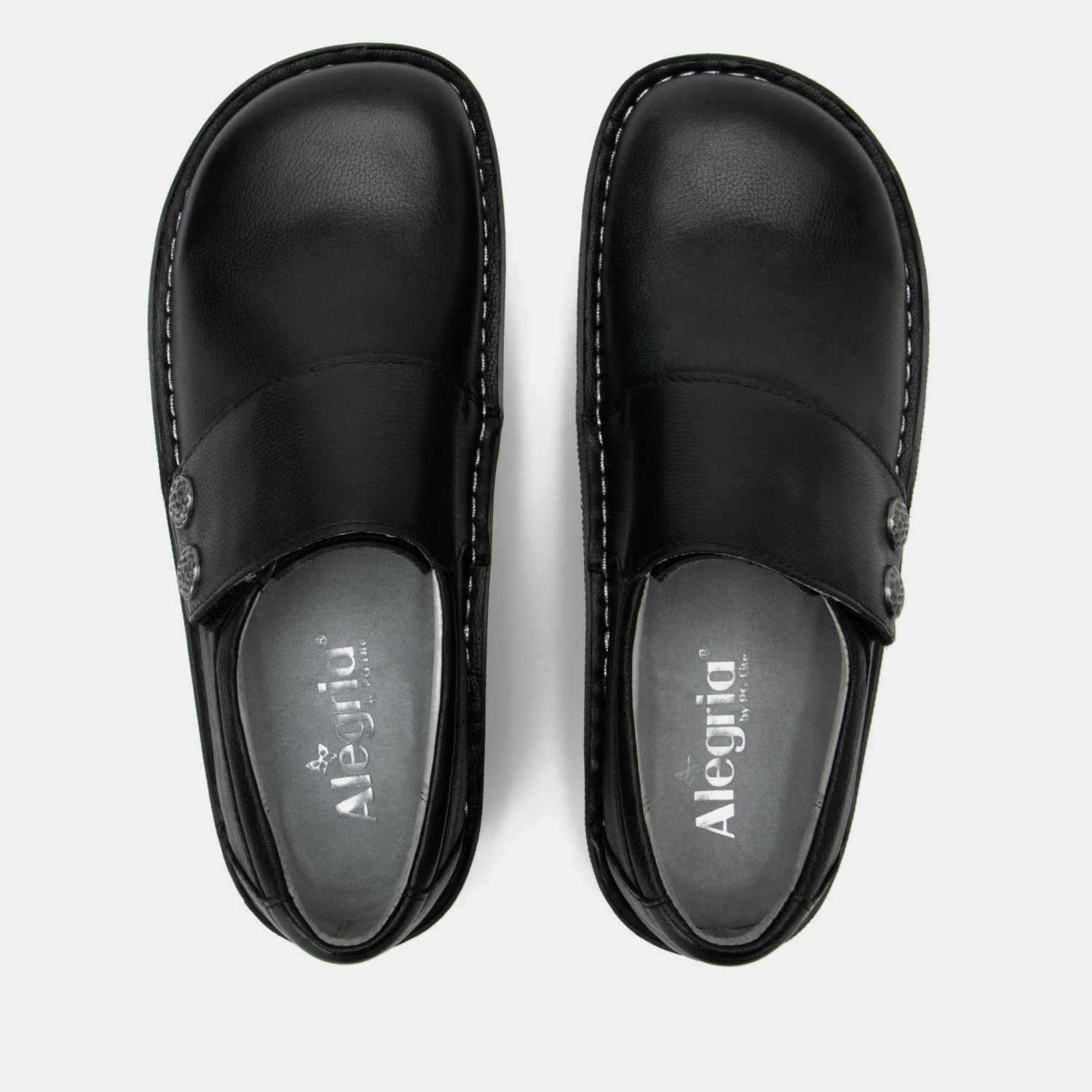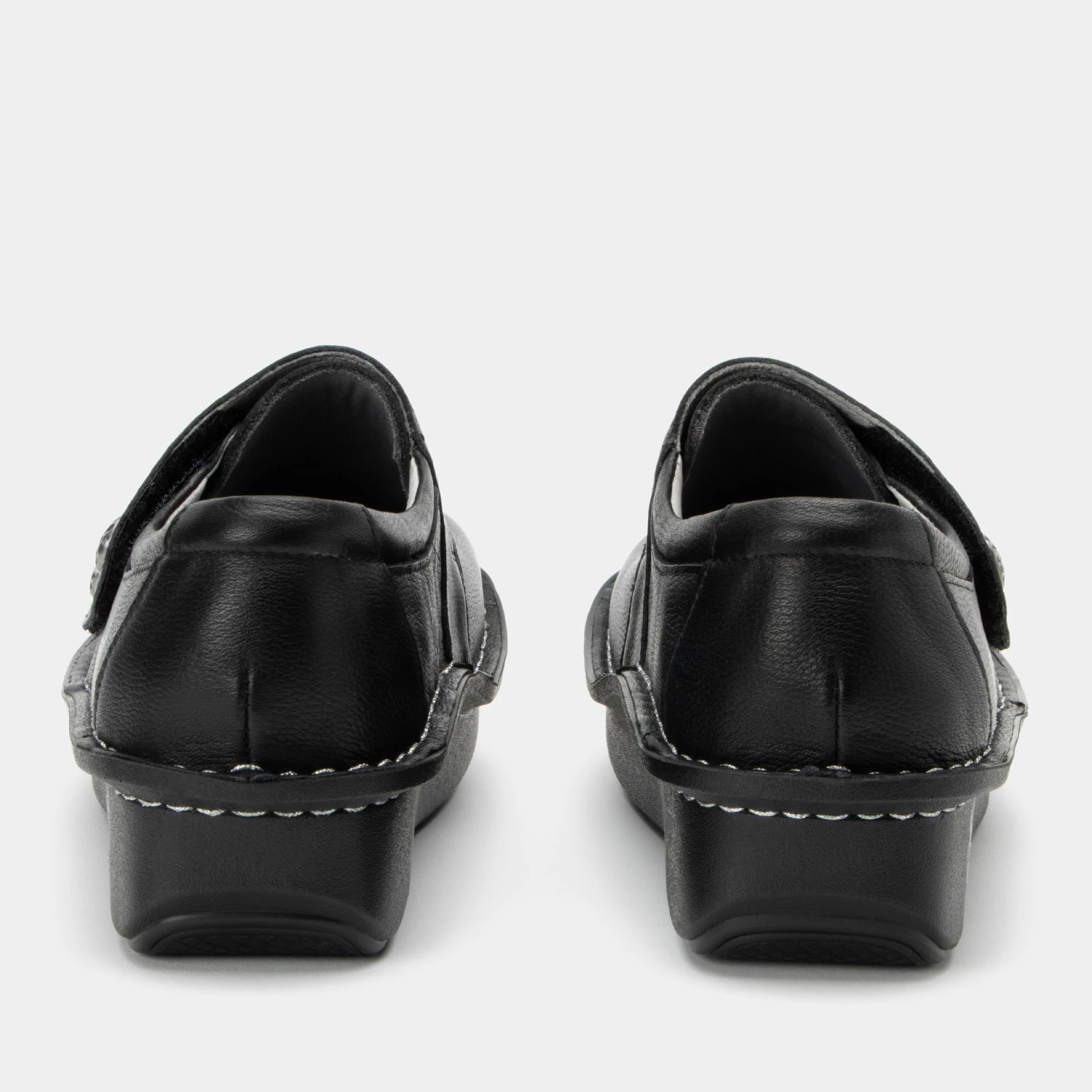Featured in supple Upgrade Black genuine leather upper, with coordinating decorative buttons.