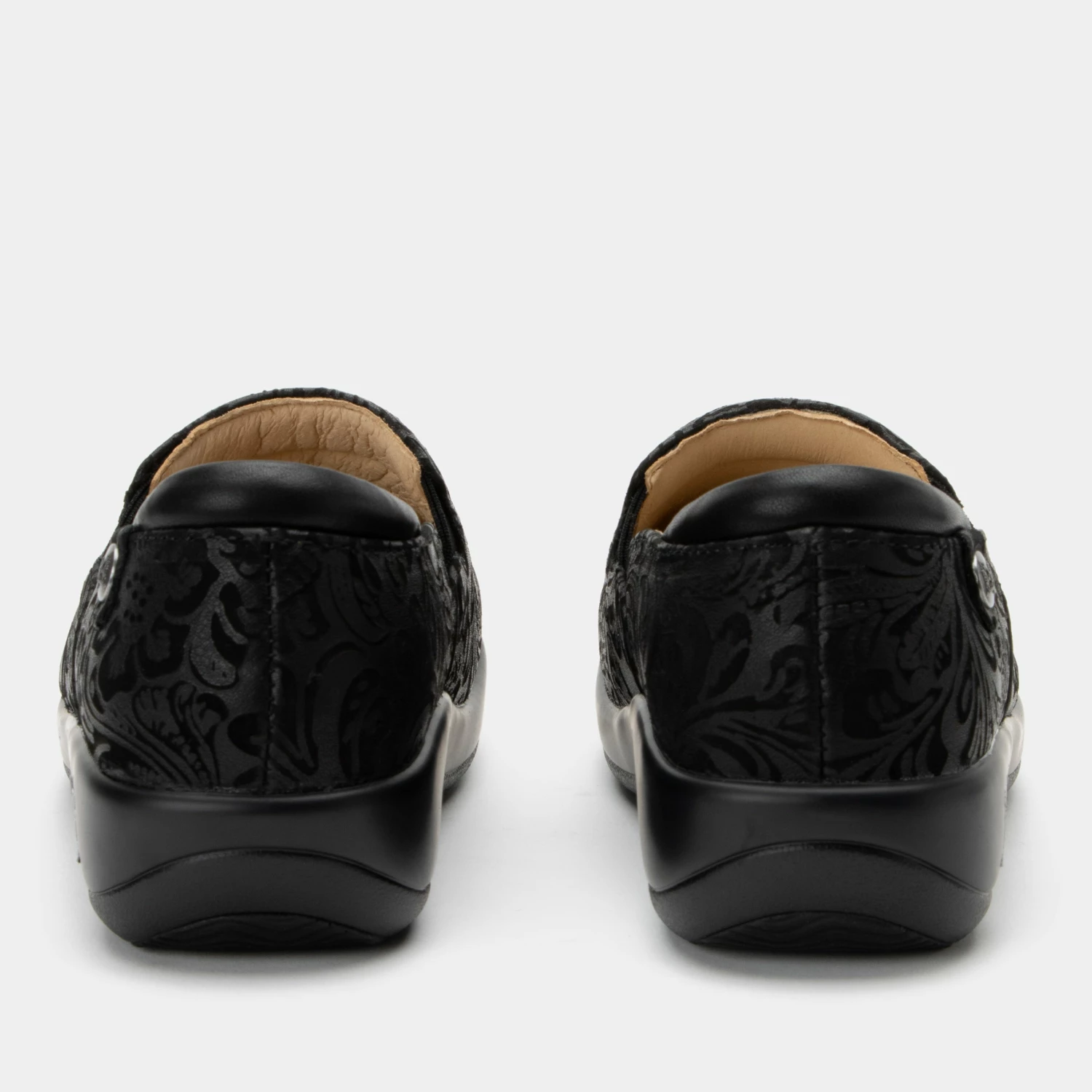 Featured in a Black Embossed Paisley design on suede leather upper.