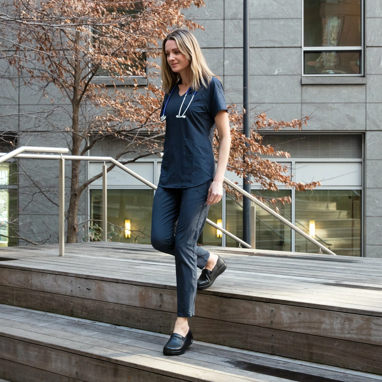Slip-ons are today’s wardrobe warriors, like this leather style with elastic side gores and gentle padding at the instep and collar. The rounded toe and removable ergonomic footbed made of memory foam and cork enhance the comfort, while the slip-resistant career casual outsole offers all-day support.