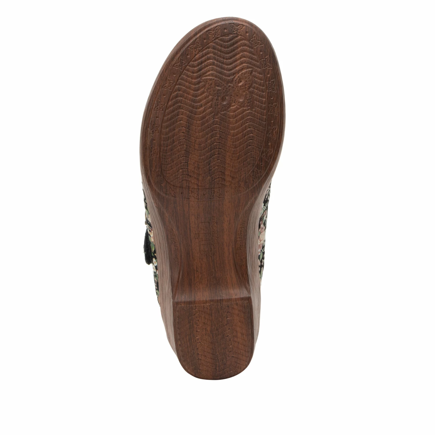 It’s all about pattern power in this Selina wedge clog dressed up with an adjustable side buckle strap and lightweight slip-resistant Wood Look Wedge outsole. Built-in arch support and a gently cushioned footbed lined with soft microsuede provide an extra degree of underfoot comfort.