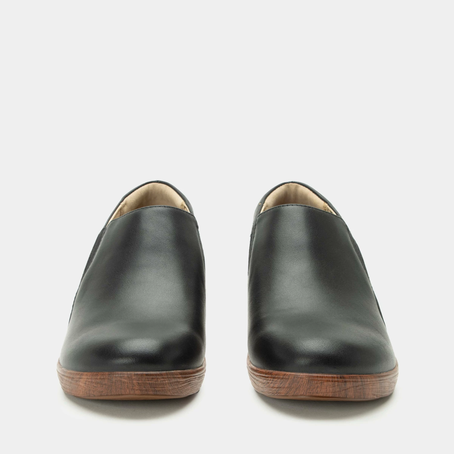 Dress up any look in this leather shootie detailed for comfort with elastic side goring and a padded collar. Taking comfort to the max is a lightweight slip-resistant wood-look wedge and removable microsuede lined footbed made of polyurethane, cork and memory foam.