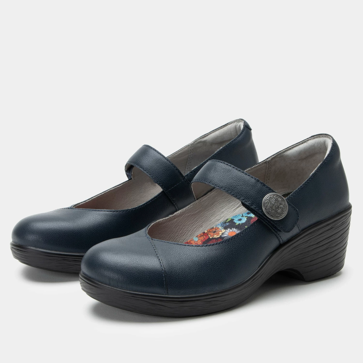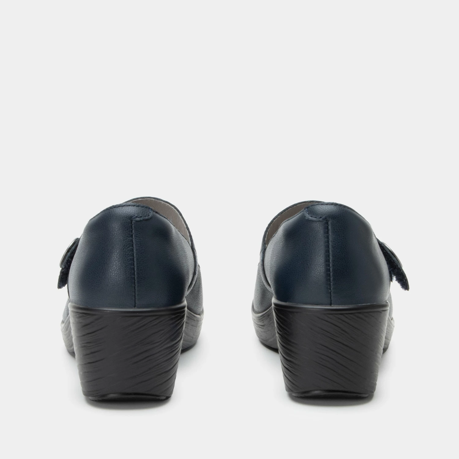 Sofi, featured in a beautiful Navy Gloss colorway on a leather upper.