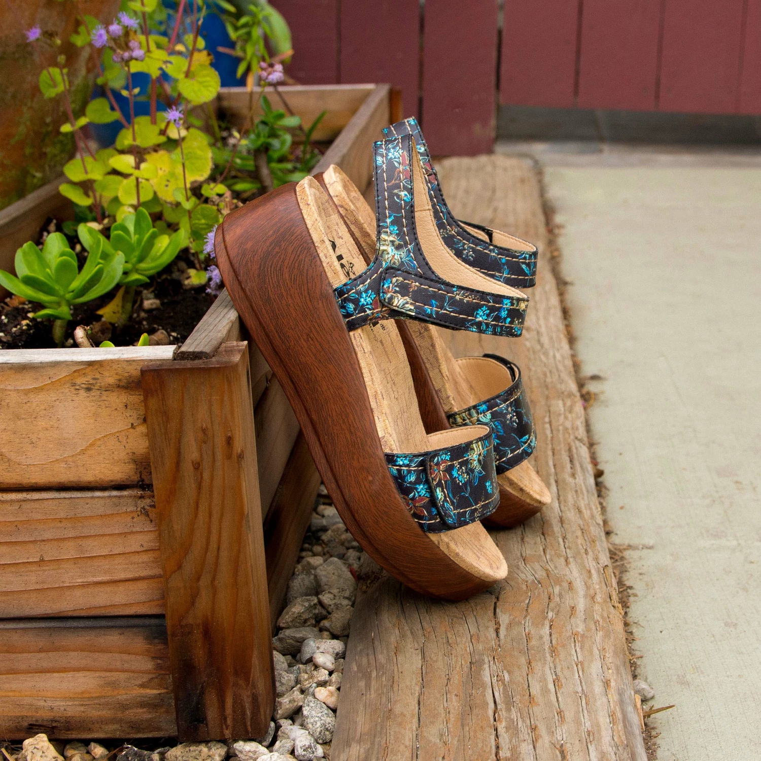 Tamsyn is a sleek, lightweight comfort platform wedge that offers height and stability. The footbed has all the comfort and support of our signature footbed and is wrapped in soft, durable microsuede. The two adjustable hook-and-loop closures keep you secure while wearing the Tamsyn. This cute Passionate floral print on genuine leather is the perfect choice for style and comfort.