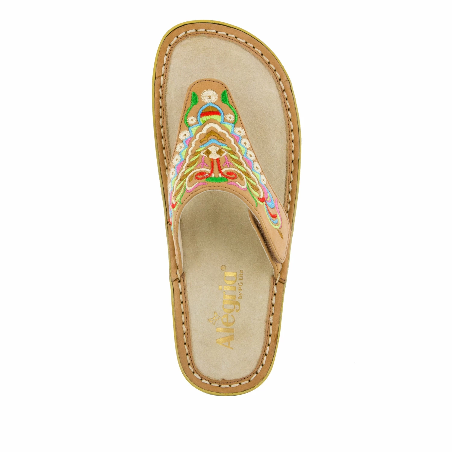 The Vanessa flip-flop sandal is on our slimmer mini outsole and features a fully adjustable leather upper for a custom fit. Express yourself with a variety of patterns and embroidered uppers.