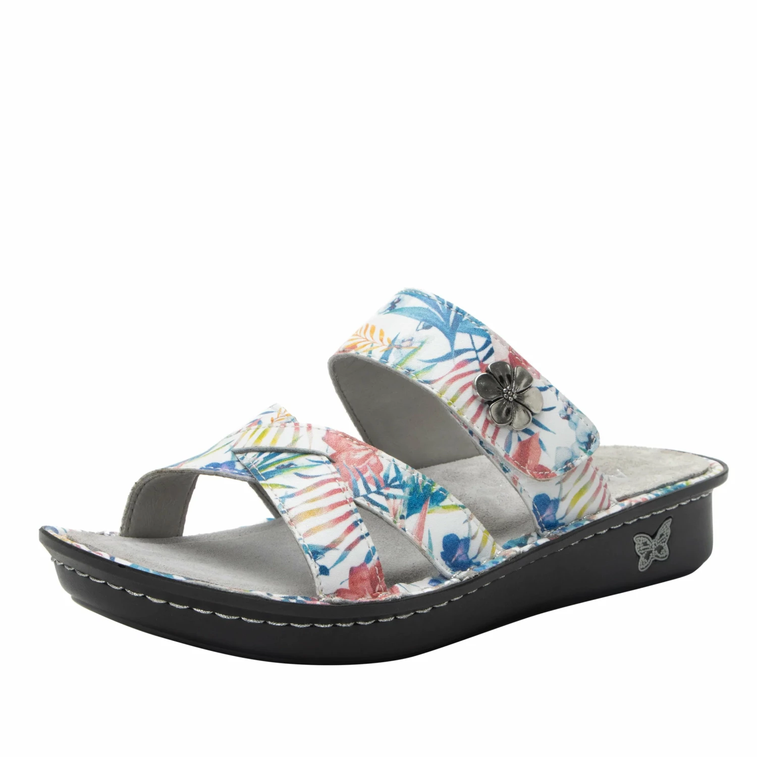 This Victoriah is featured in a fun Tropic print on a leather upper.
