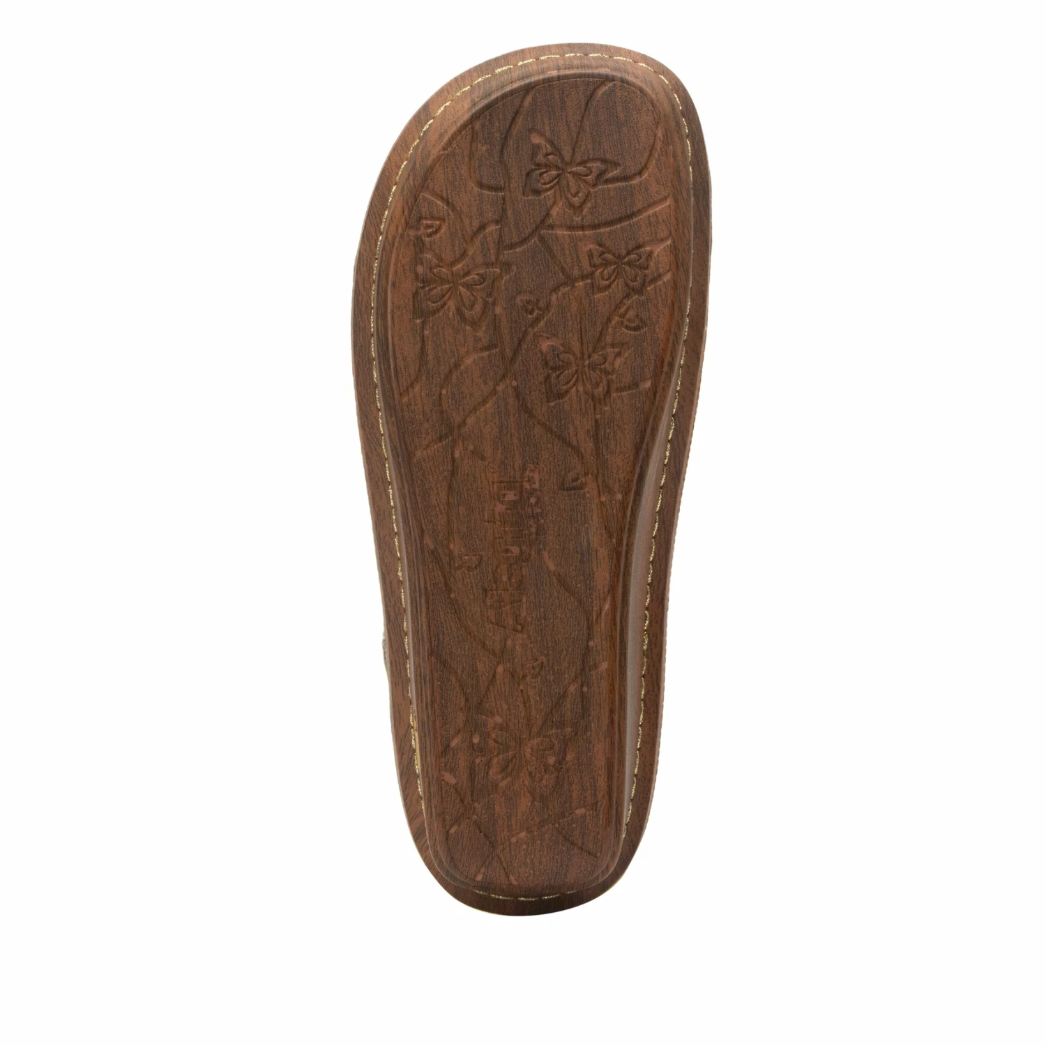 A touch of elegance sets this adjustable strap leather sandal apart, detailed with novelty embellishments for some extra polish. The removable memory foam and cork footbed with the mini outsole combine for a perfect balance of comfort and style.